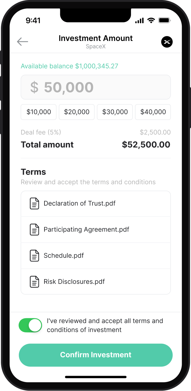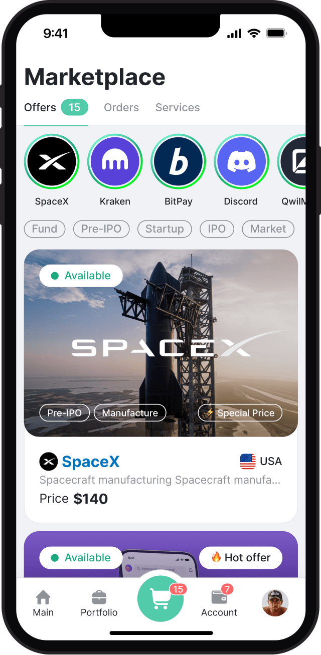One of the main advantages of the marketplace is the ability to purchase a volume of a trade starting from as low as $100 or even one share. This allows every user to invest in exclusive offers with just a few clicks.